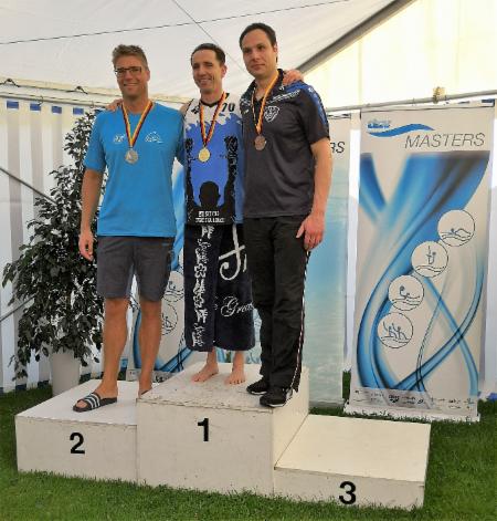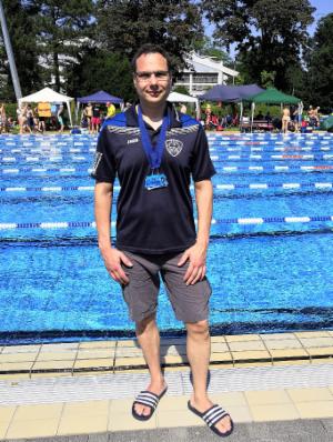 Maik Dobrinsky (AK 45) startete ebenfalls zum ersten Mal im Wettkampf um 400 m Freistil mit. Trotzdem ließ er die Konkurrenten seiner Altersklasse hinter sich zurück und landete mit einer Zeit von 7:13,01 Minuten auf dem ersten Platz.