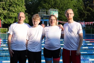 Mal in der Mixed-Staffel. Über viermal 50 m Freistil belegten die SSG-Senioren