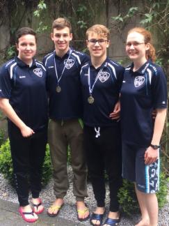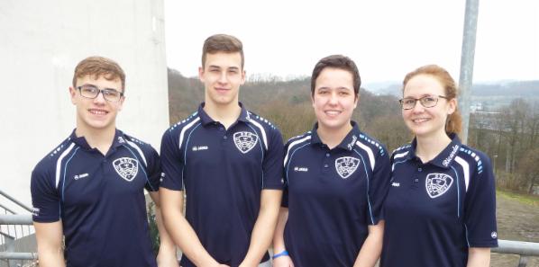 Luis San José, Lucas San José, Pauline Dörr und Trainerin Ricarda Schürmann freuen sich über die Erfolge bei den Kreismeisterschaften in Letmathe.
