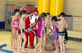 Nikolaus im SchwimmbadWeihnachtlichen Trubel gab es am vergangenen Dienstag im Hallenbad Dahle. Zum Nikolaustag hatten der Jugendausschuss und die Trainer für die sonst so fleißigen Schwimmer Spiele im Wasser vorbereitet. Obst, Kekse und Süßigkeiten sorgten zwischendurch für kleine Stärkungen. Durch lauten Gesang lockten die rund 50 Kinder schließlich sogar den Weihnachtsmann ins Schwimmbad, der für jeden ein kleines Geschenk dabei hatte. Diese hatten sich die Kinder nach vorgetragenen Liedern und aufgesagten Gedichten redlich verdient.