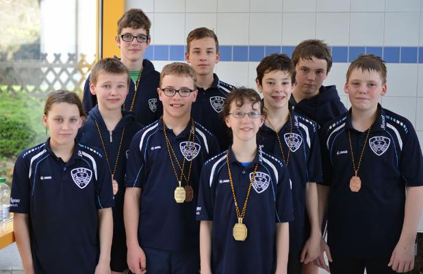 Lia Maleen Volland (Jg. 03) startete in den Disziplinen Rücken, Brust und Freistil jeweils über 50m. Besonders erfolgreich erwies sie sich über 50m Brust mit einer Zeit von 55,58 Sekunden. Bei allen Wettkämpfen platzierte sie sich im vorderen Feld. In den gleichen Wettkämpfen startete auch Melina-Leandra Becker (Jg.00). Mit tollen Bestzeiten über 50m Rücken (45,07 Sekunden), 50m Brust (46,85 Sekunden) und 50m Freistil (36,89 Sekunden) verpasste sie den dritten Platz jeweils nur um Augenblicke, konnte sich aber über gute vierte Plätze freuen. Tobias Hahn (Jg. 03) zeigte seine Bestleistung über die 50m-Strecken in den Lagen Brust, Rücken und Freistil. Im Wettkampf um die 50m Brust (54,22 Sekunden) gelang ihm der Sprung auf das Siegertreppchen und der Gewinn der Bronzemedaille.