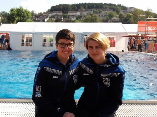 Dörr (links) und Trainerin Ricarda Schürmann im Seilerseebad.