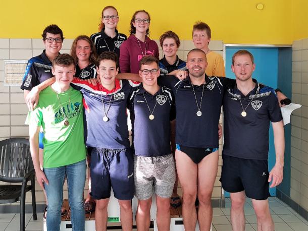 Altena/Neuenrade, 25. Juni 2017: Das Team der SSG Altena erkämpfte sich am vergangenen Sonntag, 25. Juni 2017, sieben Kreismeistertitel und drei Vizemeistertitel. Damit kehrten die Schwimmer erfolgreich vom Jahrgangsschwimmfest aus Neuenrade zurück, bei dem zugleich die Kreismeisterschaften der kurzen Strecke ausgetragen wurden.
