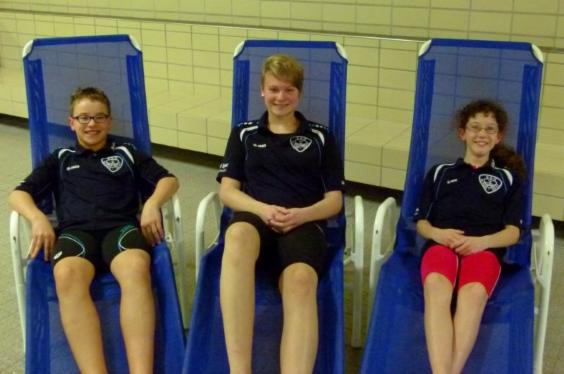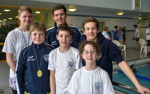 Doch auch alle anderen SSG-Schwimmer waren mit ihren Leistungen hochzufrieden. Luis San José (Jg. 03), Marcel Heuser (Jg. 02) und Fabian Helmboldt (Jg. 01) schwammen zum ersten Mal die 100 Lagen in einem Wettkampf. Trotz vorheriger Nervosität schlugen sich die drei Schwimmer hervorragend und schafften die Strecke ohne weitere Probleme. Luis San José landete sogar direkt auf dem zweiten Platz und konnte sich auch über 50m Brust (00:49,28 Minuten) den Vizetitel sichern. Marcel Heuser landete nicht nur bei den 100m Lagen, sondern bei allen fünf Starts auf dem Siegerpodest. Er und Fabian Helmboldt gaben zudem ihr Debüt über 50m Schmetterling und konnten auch hier glänzen. Fabian Helmoldt kämpfte gegen eine starke Konkurrenz in seinem Jahrgang, konnte sich jedoch über 50m Schmetterling (00:49,78 Minuten) trotzdem die Bronzemedaille sichern.