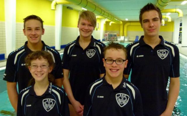 Altena, 11.12.2013: Mit Svea Weißgerber, Nikoletta Kounatidis sowie Luis und Lucas San José haben sich vier Schwimmer der SSG-Wettkampfmannschaft für die Südwestfälischen Bezirksmeisterschaften in Lippstadt qualifizieren. Zudem konnte sich auch Moritz Becker, der in seinem Training auf den Triathlon spezialisiert ist, qualifizieren und wird an den Meisterschaften am 14. und 15. Dezember teilnehmen.